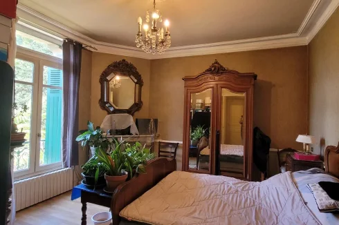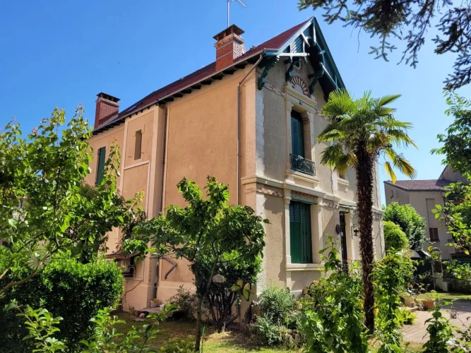 Elegant early 20th century villa set in 900 m2 garden.Entirely built over cellars, its staircase leads to the entrance distributing the bedroom, study, sanitary area, spacious living room, separate fitted kitchen and toilet.The second floor features three bright and spacious bedrooms, a bathroom and toilet.The top level attic offers two additional rooms and a shower room/toilet, ideal for welcoming guests or creating a workspace.High ceilings, period moldings and harmonious volumes make this a property to refresh to your taste.The enclosed garden is pleasantly landscaped and features outbuildings at the rear, perfect for storage or a workshop.