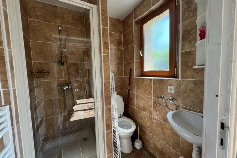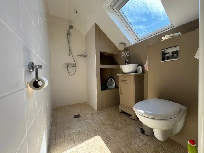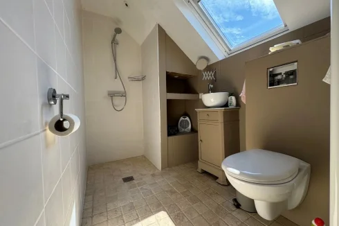 The house combines old-world charm with modern comforts: wood stove, double glazing, reversible air conditioning, solar panels, terraces with views, and bright spaces. On the ground floor, there is a beautiful, bright living room with a fitted kitchen, as well as a bedroom with a shower room and toilet, all opening onto the terrace. Upstairs, a landing leads to three bedrooms, all equipped with private shower rooms and one with a balcony, offering peace and privacy. On the garden level, a large cellar/laundry room completes the property.