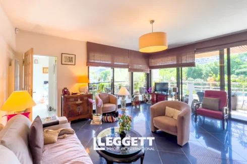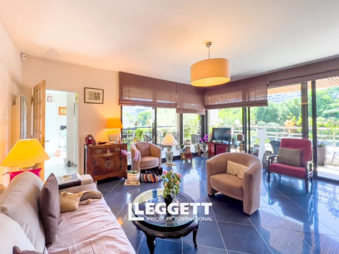 Comprising: a lovely sunny living room (41m2) with 13m of full-height picture windows opening onto the terrace, on the wooded promenade side, perfect for an aperitif al-fresco or dinner with friends, a fully-equipped kitchen, a WC + utility corner, 2 bedrooms (3rd bedroom possible), a bathroom with WC and a shower room.