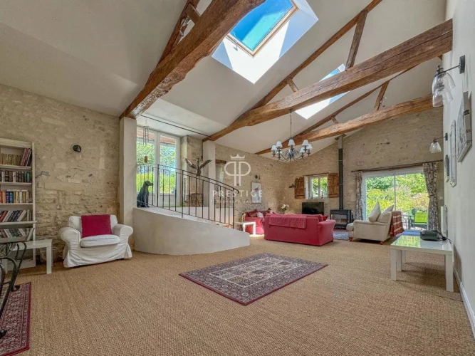 This lovely stone property is set back from the Charente and enjoys great views from inside and out.