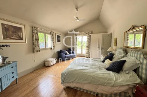 The main house includes a light and spacious 54 m2 living room. The four bedrooms in the main house and two in the guest cottage are all equally charming, as are the three bathrooms and three wc.