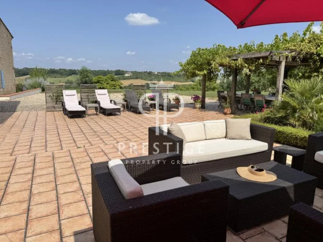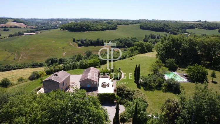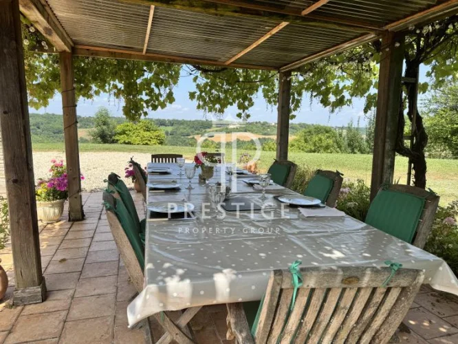 Impressive and beautifully renovated property consisting of a farmhouse with its separate guest cottage, in a peaceful and country setting with panoramic views, just 10 minutes from Cordes-sur-Ciel and Cahuzac-sur-Vere in the Tarn.