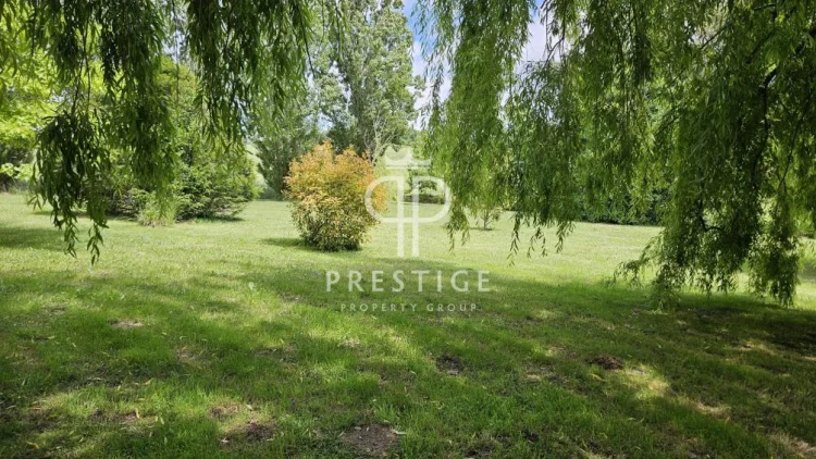 Landscaped garden including vines, weeping willow, fruit trees, etc.