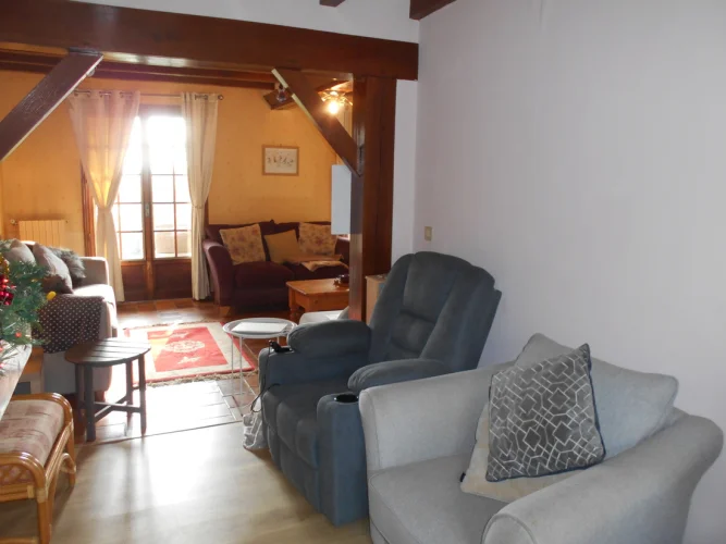Outside : In a small village that has a Mairie office and sallé de fête, community hall. Community lake for walking, fishing and enjoying.
