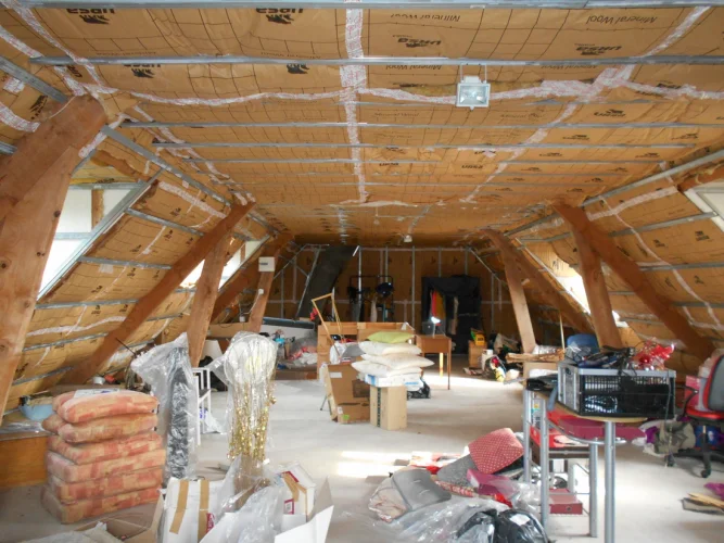 c71sqm attic with level light weight floor, 2 dormer windows to front, 2 dormer windows to rear and roof window. Patio doors in gable with balcony. Roof fully insulated. This large space is ready to transformed into further domestic accommodation if required.