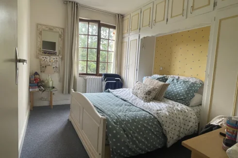 The hall leads to a corridor with large storage cupboard. From the corridor to the right :