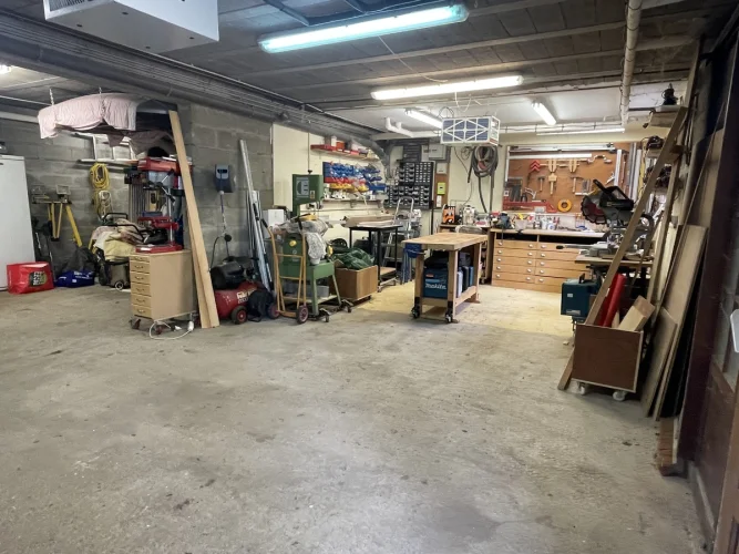 Workshop : Large workshop with fitted workstations and extractor fan – perfect for wood working (some tools available).