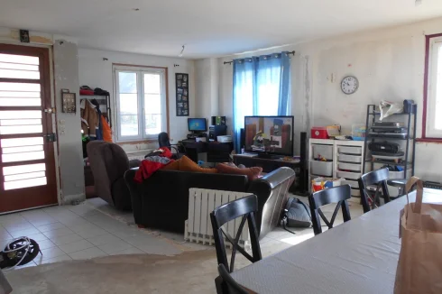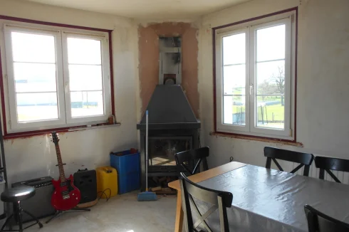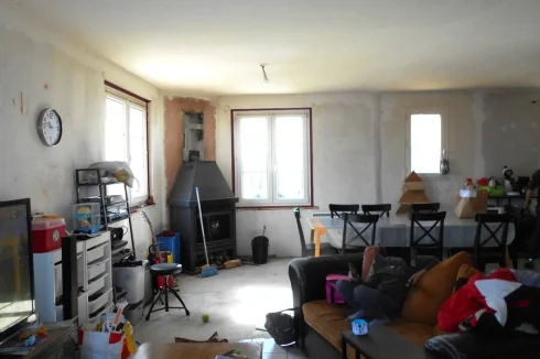 62.7sqm living room with part tiled and part concrete floor. This room is ready to be divided (current owners were going to create a ground floor bedroom) or kept as a full open plan living area.