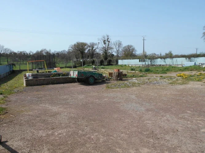 Garden : Surround the property, the garden is fenced all round and has a well. Laid in most to lawn, there is former poultry housing and storage shed.