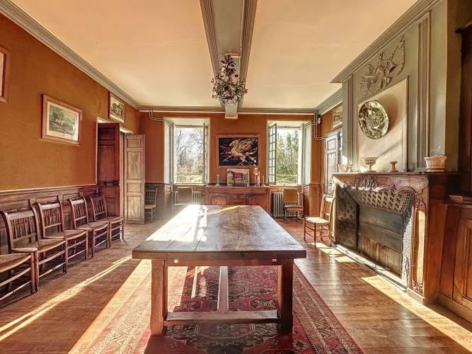 The entrance hall (30 m²) gives onto 2 sitting rooms (14 m² 32 m²) with fireplaces and onto the library (10 m²).