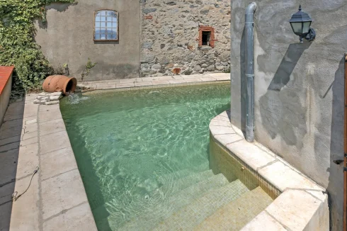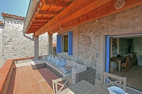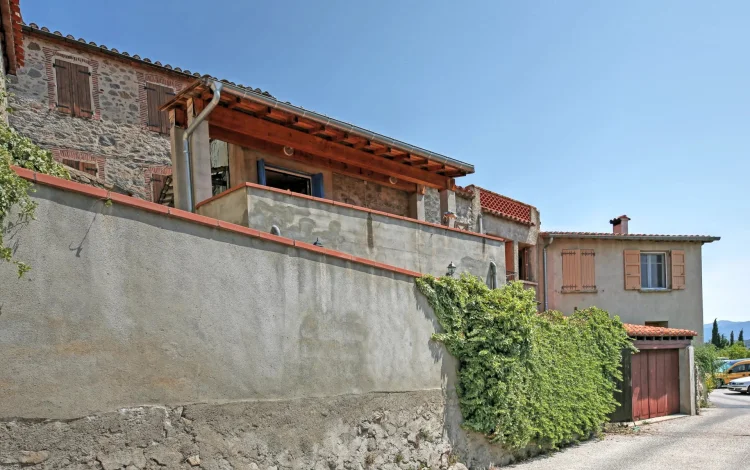 Nestled in the heart of Eus, one of France's most beautiful villages, this delightful three-bedroom, three-bathroom village house offers 105 m² of living space. The property seamlessly blends rustic charm with modern comforts, featuring exposed stone walls that add character and warmth throughout.