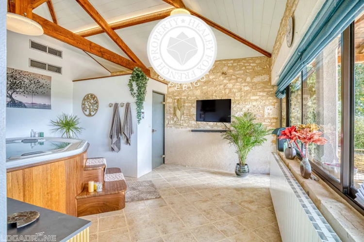 OUTBUILDINGS: New central heating with heat pump, fireplaces, reversible air conditioning in the guest house.