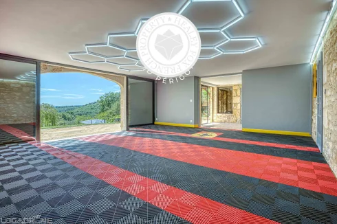 On the semi-basement level: an independent bedroom, a welcoming kitchen/dining area, a boiler room, a laundry room, a cellar, and a custom-designed garage specifically created to house a collection of classic cars, offering both space and security.