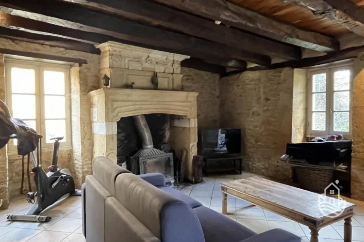 On the hills between Montignac and Sarlat, this stone house with a large barn is quietly located on a plot of approximately 2,800 m².