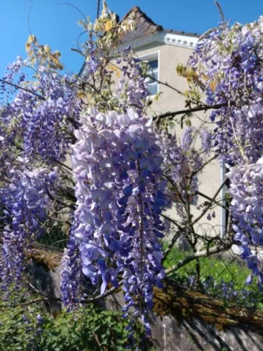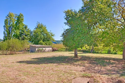 The 3800 m² garden is planted with trees, with a stone well. There are also fruit trees: cherry, pear and walnut.