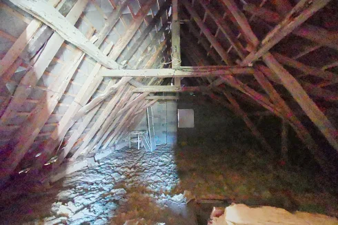 The construction is traditional. Heating is electric, in all the rooms. Pellet-burning heater in the living room with air ducts that distribute the heat and a fireplace.
