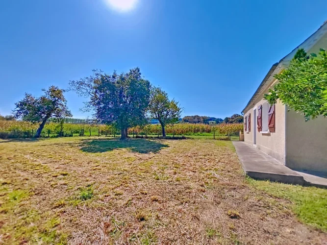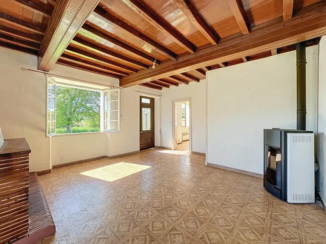 Located in the triangle of Lembeye, Madiran and Aire-sur-l’Adour, this typical Bearnese-style house has a living space of 80 m² and is composed of a living room, a kitchen, two nice bedrooms, a shower-room and a garage, on a garden of 3800 m² that is entirely fenced-in and tree-filled, with a well.