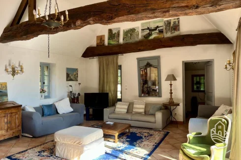 On the heights of Montignac-Lascaux, less than 10 minutes by car and a few kilometres from a motorway entrance, this quiet property, with no close neighbours, is set on approximately 2 hectares of land, much of which is wooded.