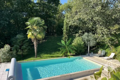 It comprises a main house with a large, bright living room opening onto a huge south-facing terrace, a spacious kitchen/dining room, three bedrooms, and a second, smaller house with three bedrooms, a shower room/toilet, and a small kitchen. The recently renovated swimming pool benefits from a second terrace with views and access to the garden. Central heating is provided throughout. This well-located property could be a primary residence or a magnificent second home with real seasonal rental potential.
