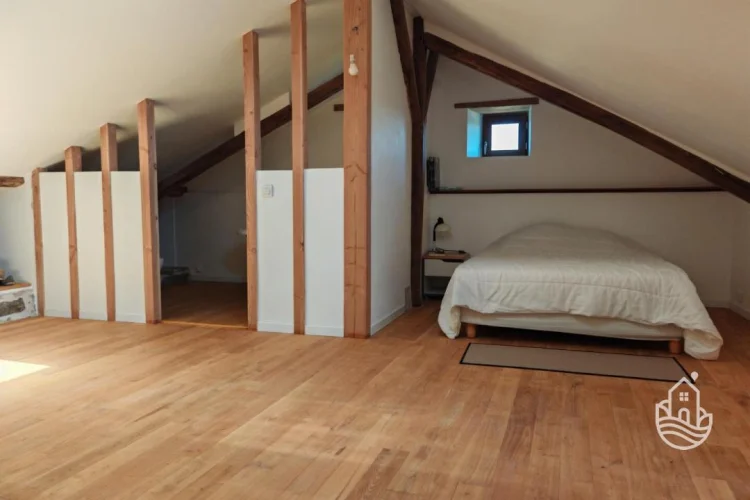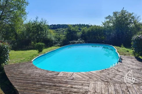 The property offers a peaceful setting, with no nuisances, no neighbours opposite and views of the surrounding forest. 7,000m² of land with a swimming pool, a well and fruit trees.