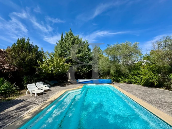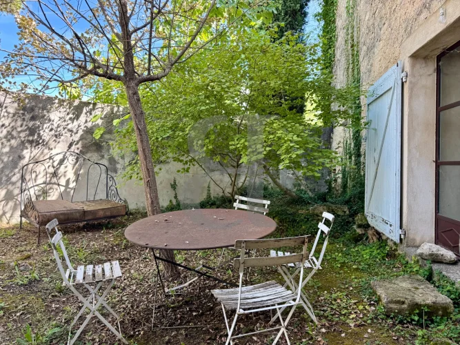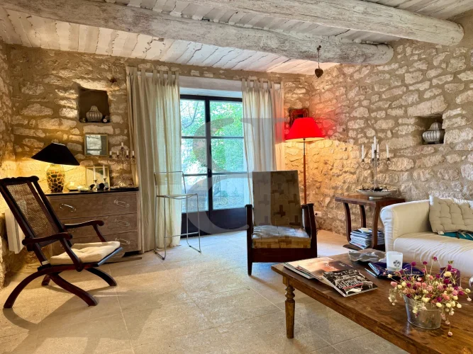 Outside, an intimate, tree-lined garden features a pleasant swimming pool, perfect for enjoying long summer days and the peaceful setting of the Luberon.