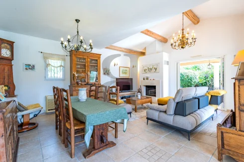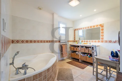 The living area opens onto a delightful landscaped garden of more than 720 sqm, fully enclosed, and featuring a swimming pool equipped with the renowned Desjoyaux system, praised for its reliability and easy maintenance.