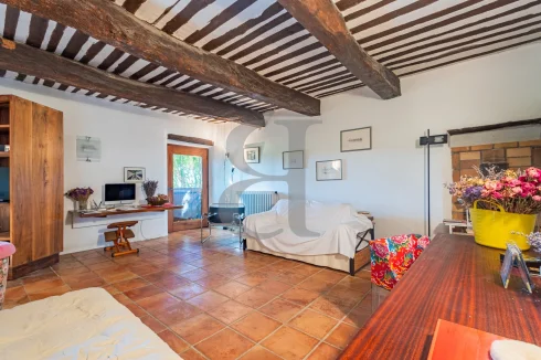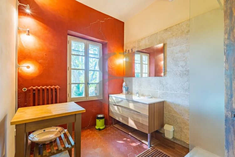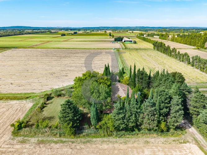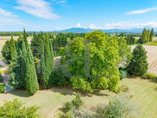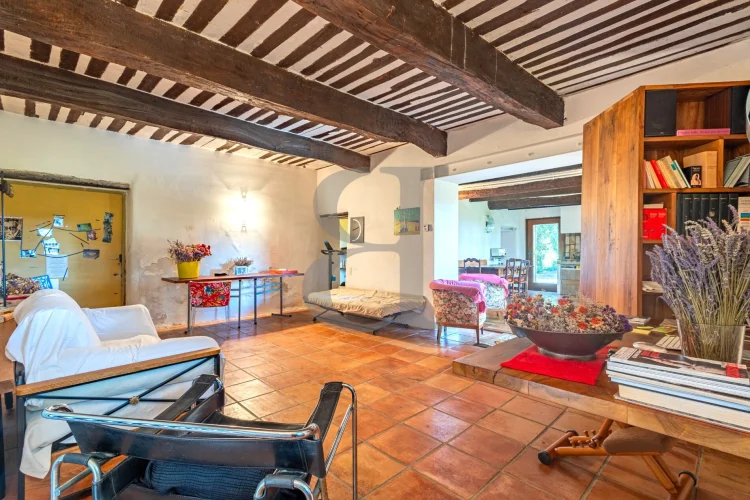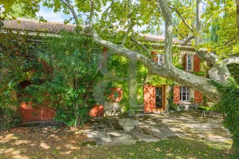 Nestled in lush greenery in the heart of the countryside, this authentic farmhouse for sale in Sarrians combines old-world charm, traditional architecture, and a relaxed lifestyle with over 180m² of living space.