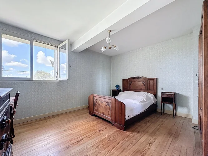 The main house is 283m². The 13.5m² entrance hall has the original wooden staircase and serves to the right the 30m² living room with fireplace. To the left is the vast 57.5m² sitting room and the 17.5m² kitchen. There is a 5.70m² bathroom, a 6m² washroom, a toilet and a 19.50m² kitchen. Upstairs are four bedrooms (15.75m², 21m², 30m² and 31.50m²), a toilet and a loft.