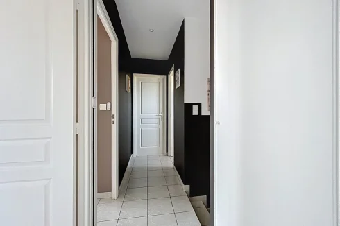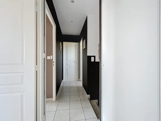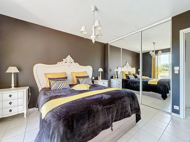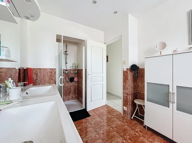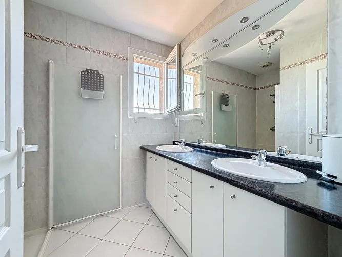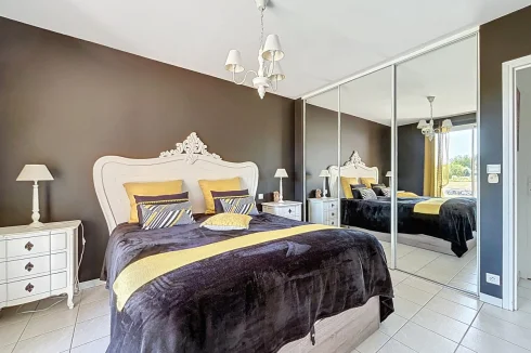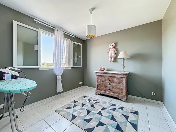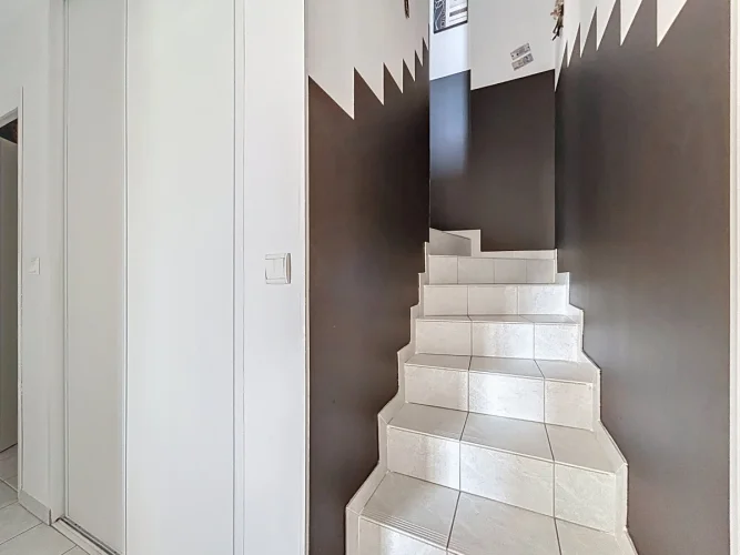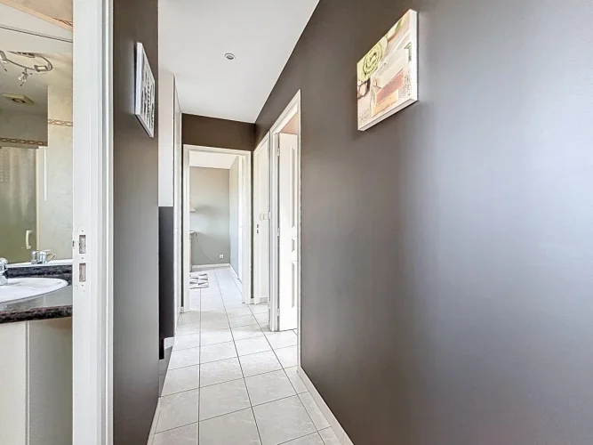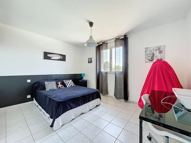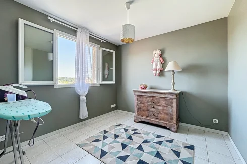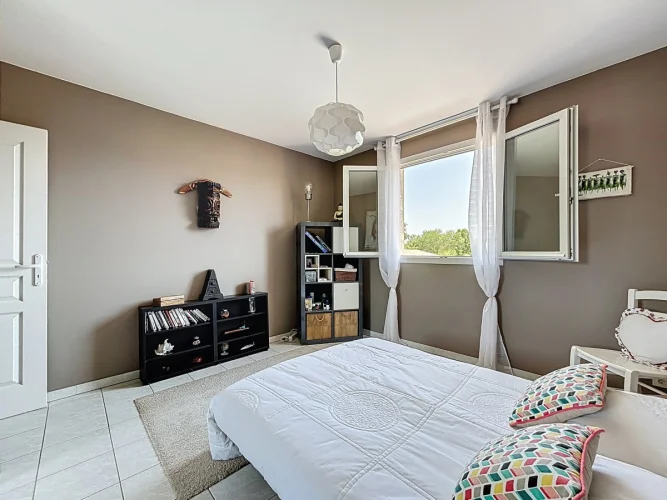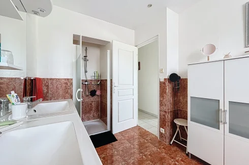 Let’s take the staircase leading to the first floor’s sleeping area. The landing gives access to 3 bedrooms with wardrobes (10 m², 14 m², and 12.70 m²), along with a toilet and bathroom reserved for this level. The entire floor is air-conditioned for cool nights during the warmest months.