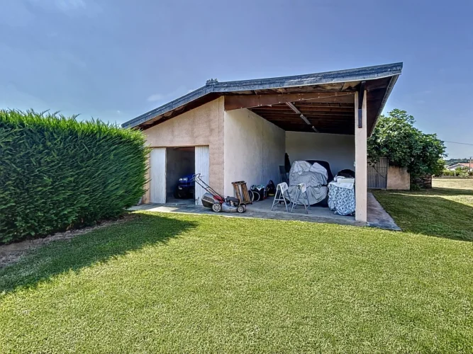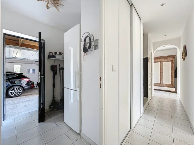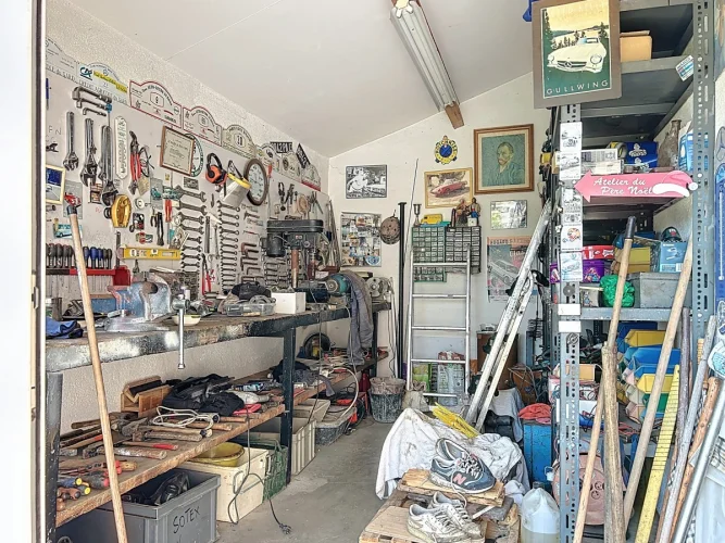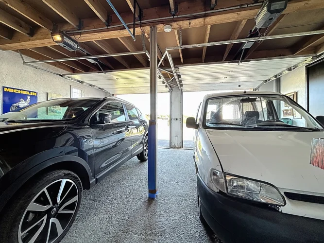 A large garage (43 m²) with motorised doors allowing for 2 vehicles, plus an 11 m² workshop, complement this home.