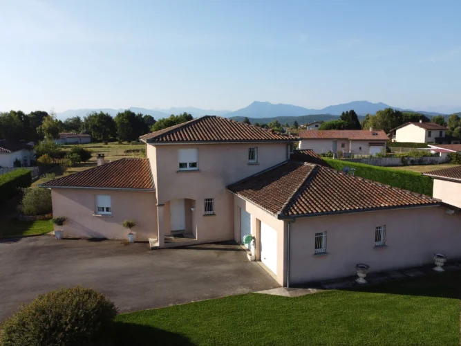 In a quiet residential neighbourhood of Saint-Gaudens, close to the town centre, this superb 145 m² villa offers a living room, dining room, fully equipped kitchen, 4 bedrooms and 2 bathrooms, 2 garages, all set on a 5,000 m² plot with views of the Pyrenees.