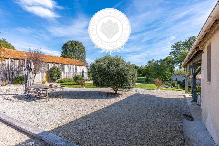 OUTBUILDINGS: A tobacco drying shed of approximately 170 sqm, in perfect condition, offers multiple development possibilities, whether for a workshop, a storage space or a conversion into a gîte.