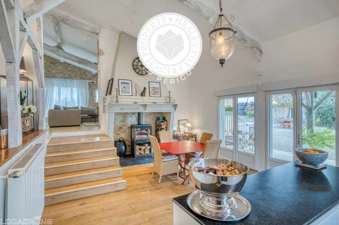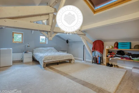 Upstairs, a landing leads to two beautiful attic bedrooms of approximately 20 sqm and 15 sqm, a bathroom of approximately 7 sqm, thus providing a private and comfortable space for family or guests.