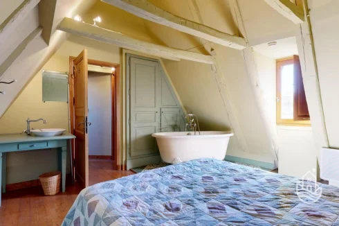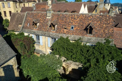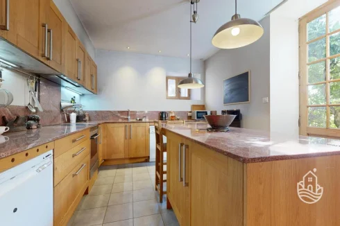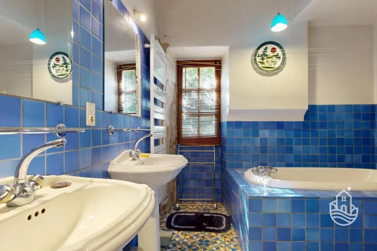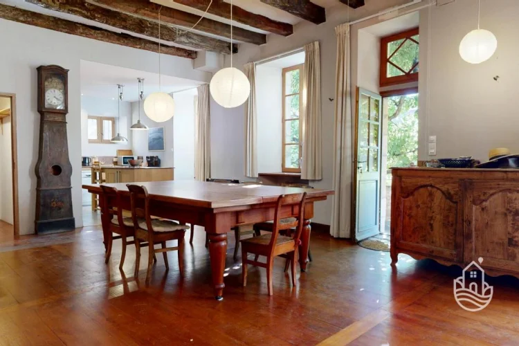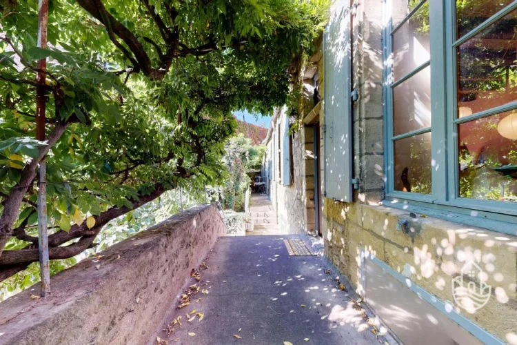 Enveloped in wisteria, this large old house, although located in the town centre, is an enchanting haven of calm, with low walls and hidden corners, and multiple terraces sheltered from view. With 2,350 square feet of living space, it offers four bedrooms, three bathrooms, one shower room, a beautiful living room opening onto the fully equipped kitchen, and a living room with a fireplace.