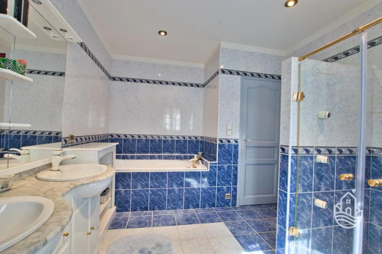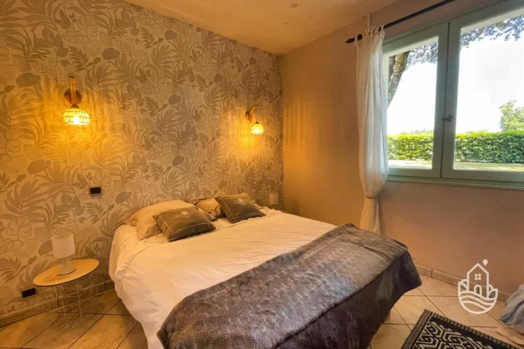 Upstairs, there is a suite with a shower room and toilet, and a large terrace overlooking the 4,800 m² park. The Bali-style pool, built in 2021, is heated, with travertine surrounds, and a roller shutter ensures security. A mobile home is currently rented out on the grounds.