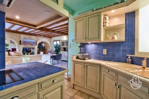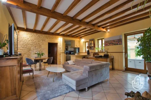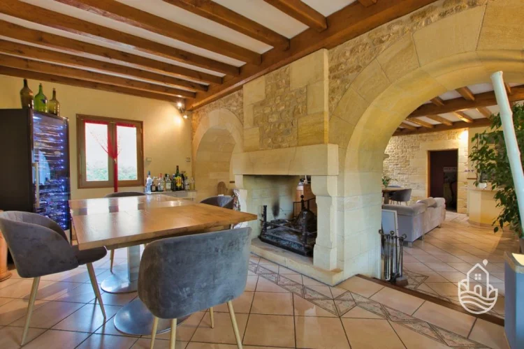 Only 2km from Sarlat, in a quiet, rural but not isolated setting, this 158 m² house offers an entrance hall, a 58 m² living room with a central fireplace, a semi-open kitchen, a pantry, two bedrooms, a dressing room, a toilet, and a bathroom with a shower and whirlpool bath.