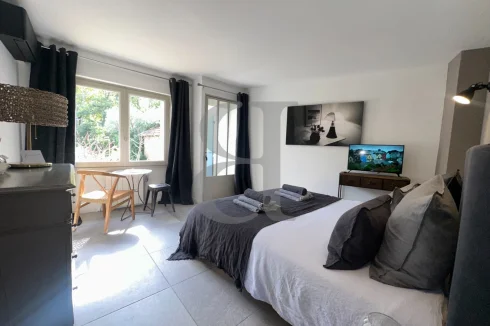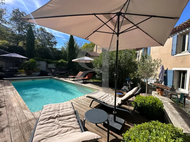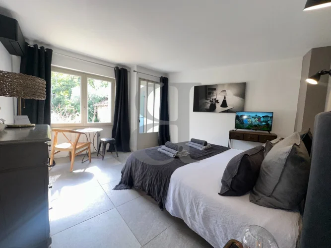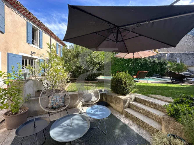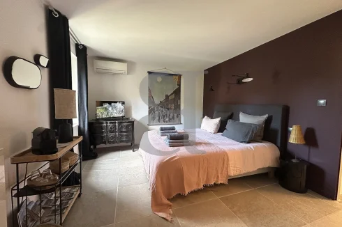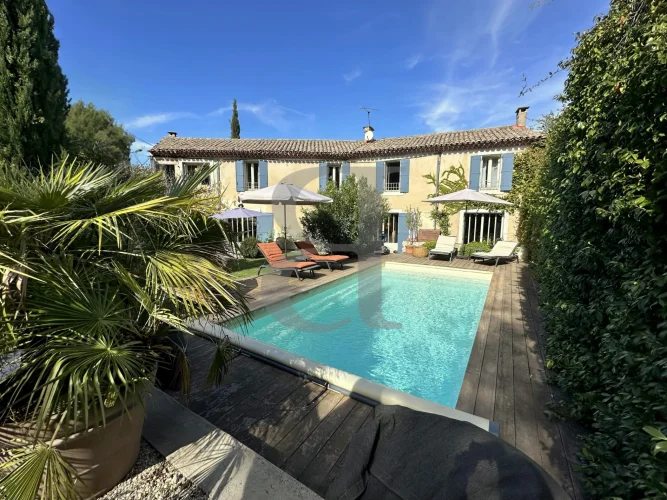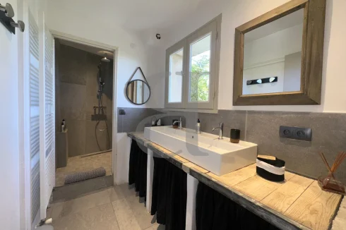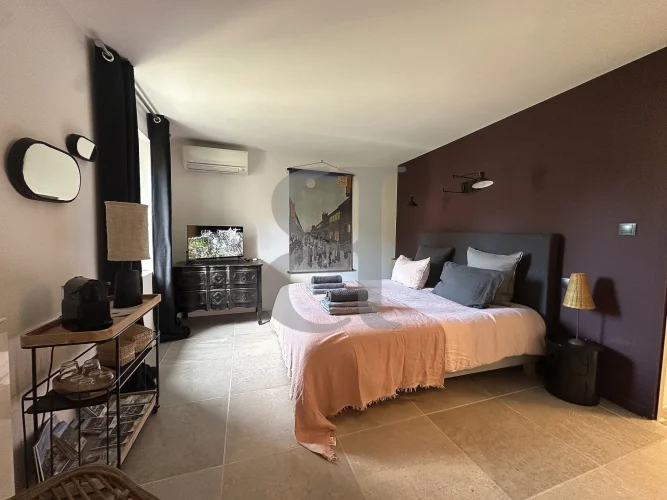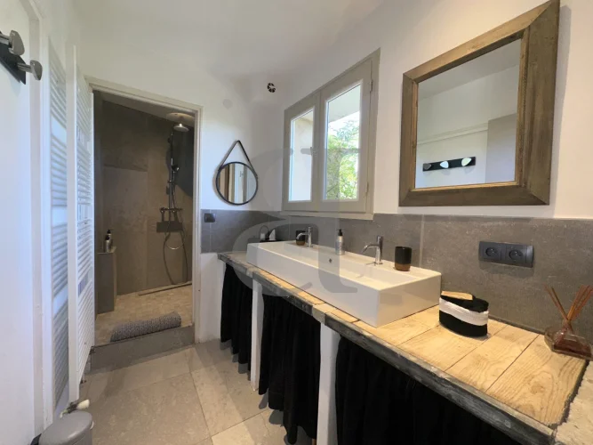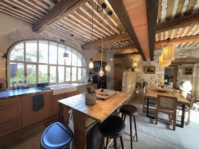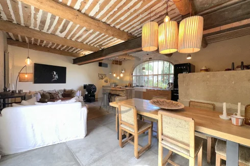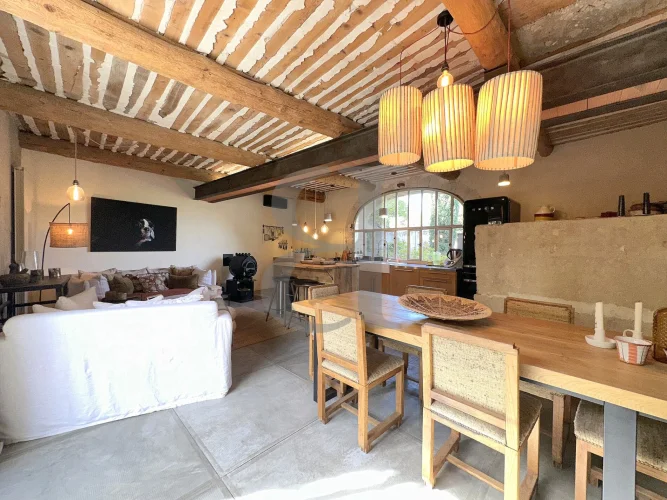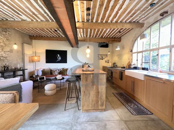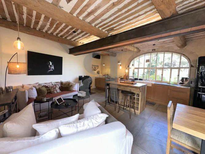 Tastefully renovated, this farmhouse has preserved all its Provençal character: exposed stone, wooden beams, Provençal ceilings, and an antique drinking trough at the entrance.