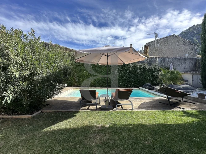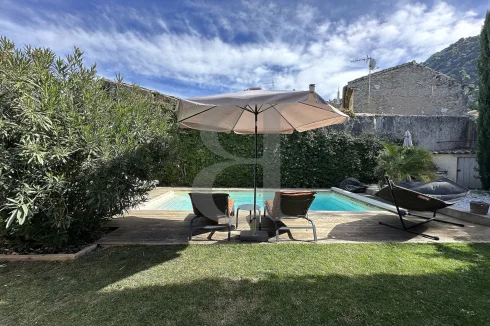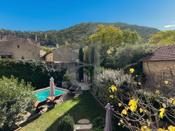 Authentic Provençal farmhouse for sale in the heart of the village of Robion with swimming pool and views of the Luberon.