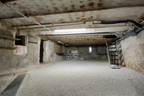Basement = Very spacious garage of 100 m2 with several adjoining rooms and a well (not suitable for large vehicles, only for standard-sized cars).