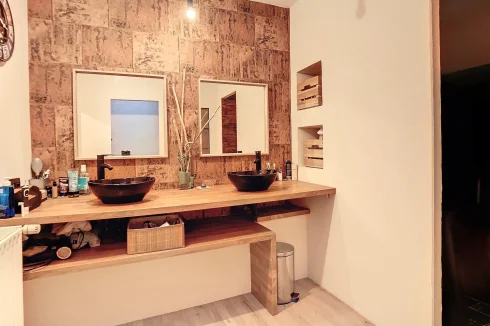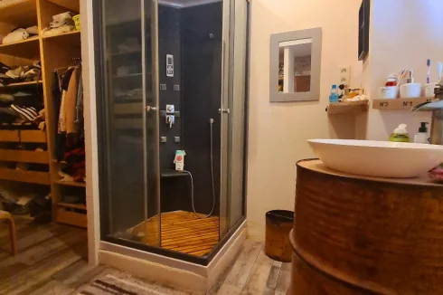 1st = Hall of 4.2 m2 + bedroom of 25 m2 with en suite shower room (italian walk-in shower, basin unit, WC) + bedroom of 26 m2 with en suite shower (italian walk-in shower, basin unit, WC) + sauna area of 4.26 m2.