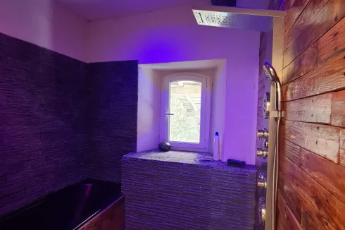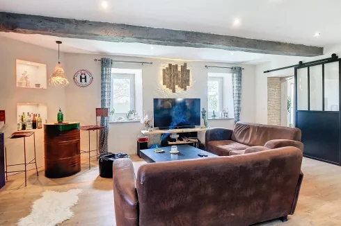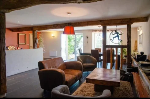Extras = Fully renovated + heat pump system (main house) + electric heating (gite) + reversible air conditioning (reception room) + 72 m2 of photovoltaïc solar pannels (2500 Euros/year) + septik tank upto standards + parking for clients (more than 35 places) + car port of 55 m2 + estimated amount of annual energy consumption for standard use: between 1240 Euros and 1730 Euros per year. Average energy prices indexed on 1st January 2021 (including subscriptions) + annual property tax of 2641 Euros.