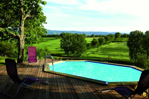 Exterior = Land of 32888 m2 with forest and fields + beautiful views + above ground pool (5x4m, chlory).