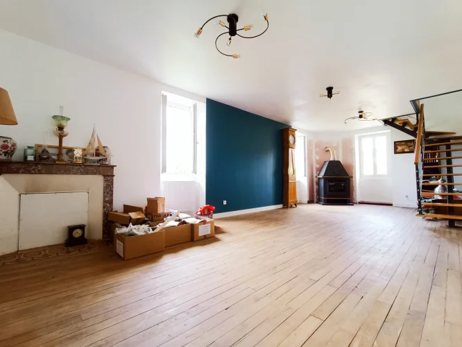 - Heating is provided by a wood-fired boiler with central heating, supplemented by a wood-burning stove (non-compliant flue system to be reviewed).