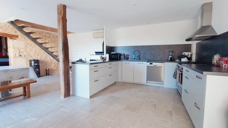 A magnificent barn restored as a 107 m² reception room, ideal for family gatherings or professional activities,