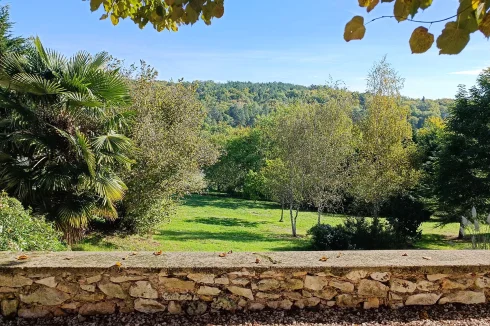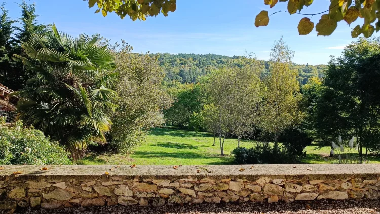Located in a lush green setting with open views, this superb stone property combines old-world charm and modern comfort. It has few neighbors and is not overlooked.