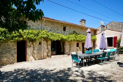 Exclusive - Virtual tour available. Set on 3 acres of land and fully private, charming property composed of a 3 bedroomed house, an adjoining 4/5-bedroomed gîte that can accommodate up to 14 people, outbuildings and a stunning swimming pool ! Ideal property for running your rural gîte business. Located 10 minutes from Fontenay Le Comte, just enjoy the quietness and character of this stone property. Self contained accommodation (gite): Stone walls and exposed beams in all rooms - Large living room with log burner, dining room, kitchen with wood-burning stove, these 3 rooms open onto a large courtyard. From the kitchen, access to the upper floor to 2 beautiful bedrooms and a shower room. From the dining room, access to the upper floor to 3 bedrooms and 2 shower rooms. House : on the ground floor, entrance hall, living room with wood stove, dining room, kitchen leading onto the garden, utility room, a shower room and a bedroom. From the living room, a staircase leads to 2 bedrooms and a large bathroom. Outside : meadows both sides of the house , vegetable garden, and hidden behind a hedge, a large area perfect for outdoor games comprising of the 12x6m swimming pool and its pool house. You will also have an open barn and a detached workshop. Oil central heating, double glazing. Many assets and possibilities for this 340m2 living area property ! Your contact: Pierre Dessombs - - Fluent English speaking local agent