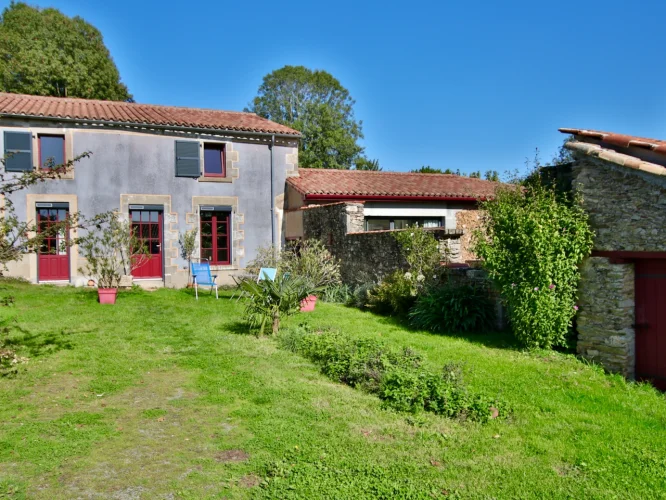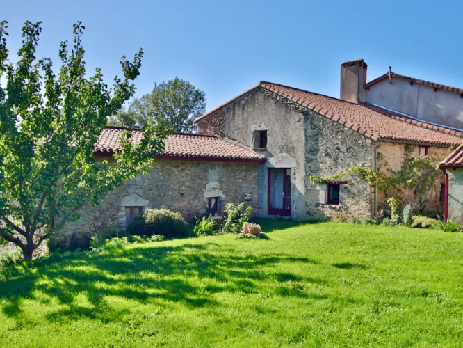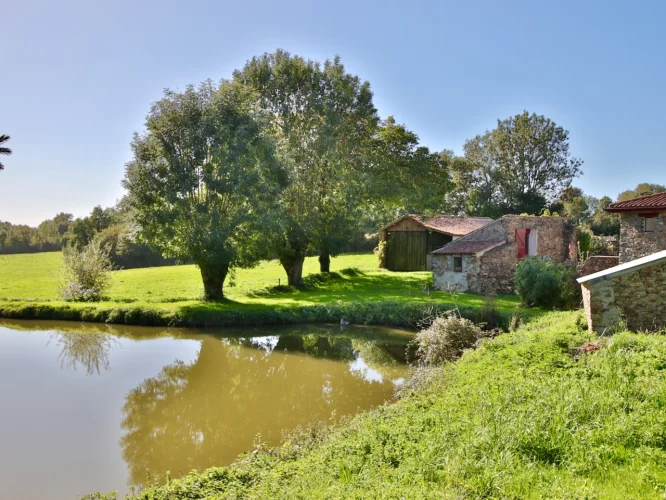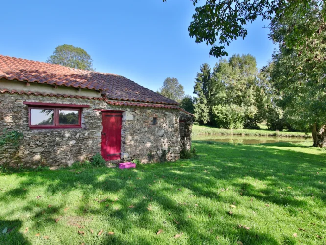 30 minutes drive to Niort, 15 minutes to La Châtagneraie in the Vendée, 5 minutes drive to L’Absie. Atlantic coast within 1 hour drive. In the rolling countryside of Gâtine, property set on more than 8000m2 of land, with a lake of approx. 1000m2 and a wooded garden. You will have 2 characterful houses and several outbuildings (wood shed, garden sheds and a barn). The main house is approx. 145m2 with its original layout including: Kitchen / dining room which opens onto a living room with fireplace, parental area with small lounge, shower room / toilet and a large bedroom a few steps down. On the other side of the house: a 2nd bedroom, a shower room and separate toilet. Upstairs, landing room which leads to a 3rd bedroom with exposed beams, a toilet and a storge room. South-facing, geothermal underfloor heating. An independent stone house of approx. 50m2, just a few meters from the main house, consists of a living room with wood stove, a lovely fitted kitchen, a shower room and a laundry room. Large attic bedroom on the 1st floor: a cozy & comfortable cottage. Must see!! Your contact: Pierre Dessombs - - Fluent English speaking local agent