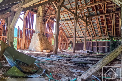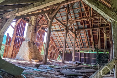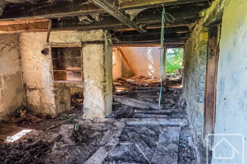 As the photos show, the property is currently uninhabitable — except perhaps for cows! However, it offers generous proportions, with approximately 100 m² on the ground floor and a barn with a footprint of around 126 m², high enough to allow for the creation of a third level if desired.