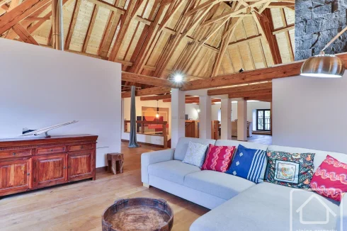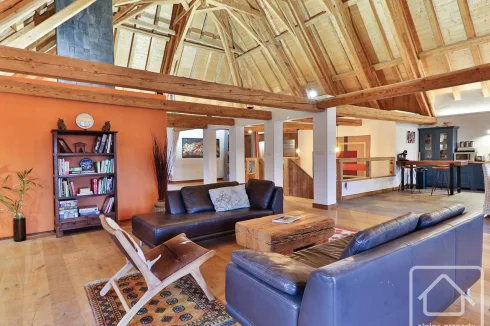 Architecturally stunning, this unique manor features period details such as natural stone floors, a grand staircase, and a majestic vaulted wooden ceiling. With six bedrooms, multiple living areas, and flexible layouts, this property is perfect for those seeking a mountain sanctuary with versatile accommodation options.