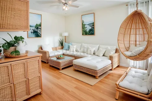 It consists of three bedrooms, including a master suite with a dressing room that can be converted into a fourth bedroom and access to a private balcony, a bathroom, a shower room, two toilets, a laundry room, and a fully equipped kitchen opening onto a large, bright living and dining room.